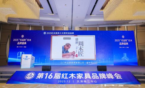 2025.12.31在本届 “红品奖” 颁奖盛典上,中式家具领军品牌 “盛世周木匠”(所属企业:江门市品家家具有限公司)凭借深厚的品牌积淀、出众的产品实力与广泛的市场认可度,一举斩获两大重磅奖项: 2025 红木家具十大受欢迎品牌 2025 刺猬紫檀家具热门品牌